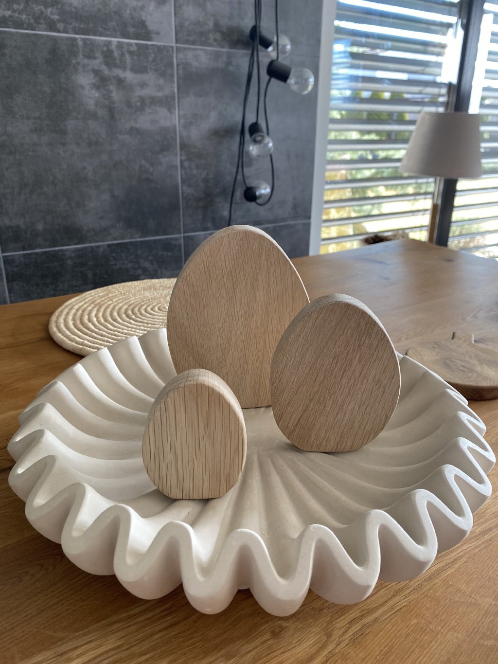 Tato sada obsahuje tři ručně vyrobená dekorativní vajíčka z kvalitního dubového dřeva, která se vyznačují svou jedinečnou kresbou a přírodní strukturou. Každé vajíčko je pečlivě broušené.